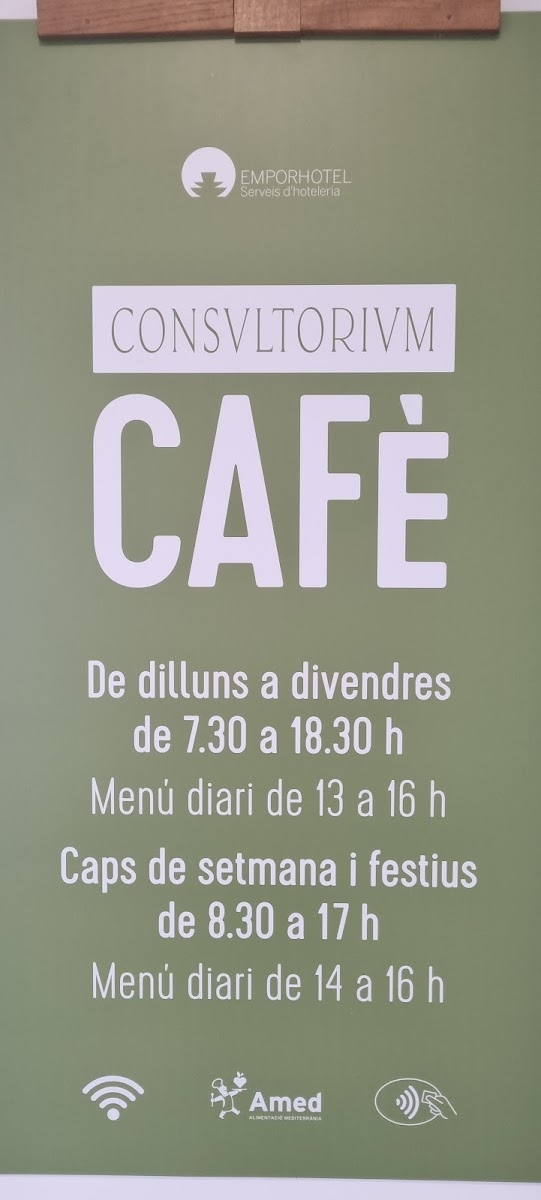 Welcome to CONSULTORIUM, a charming café nestled within the Hospital de Palamós, located at Carrer Hospital, 36, 17230 Palamós, Girona, Spain. This inviting spot offers a delightful menu focused on quality and affordability, perfectly tailored for both visitors and staff alike.